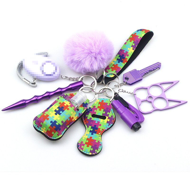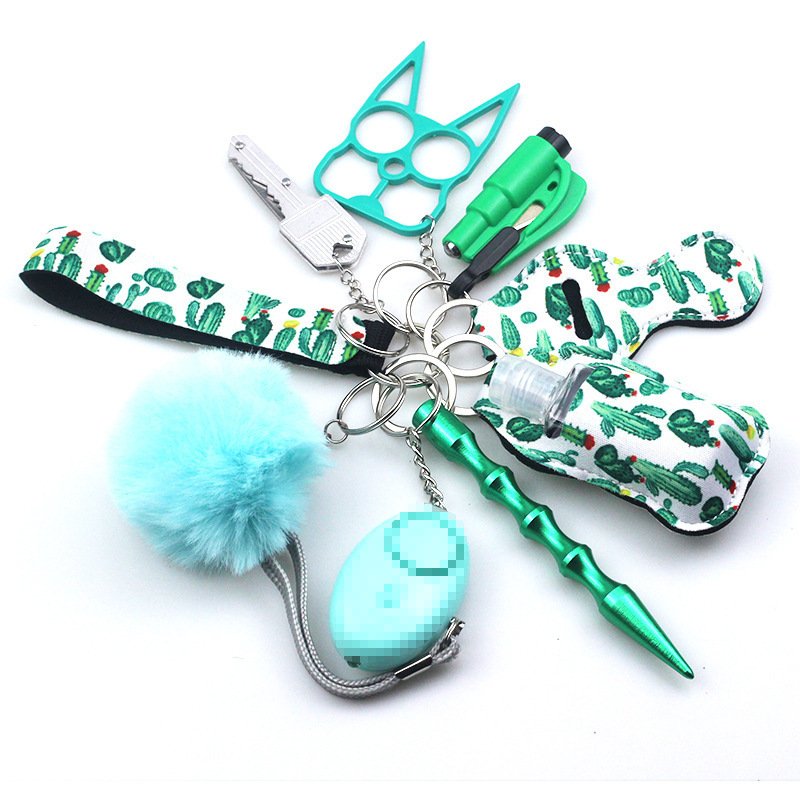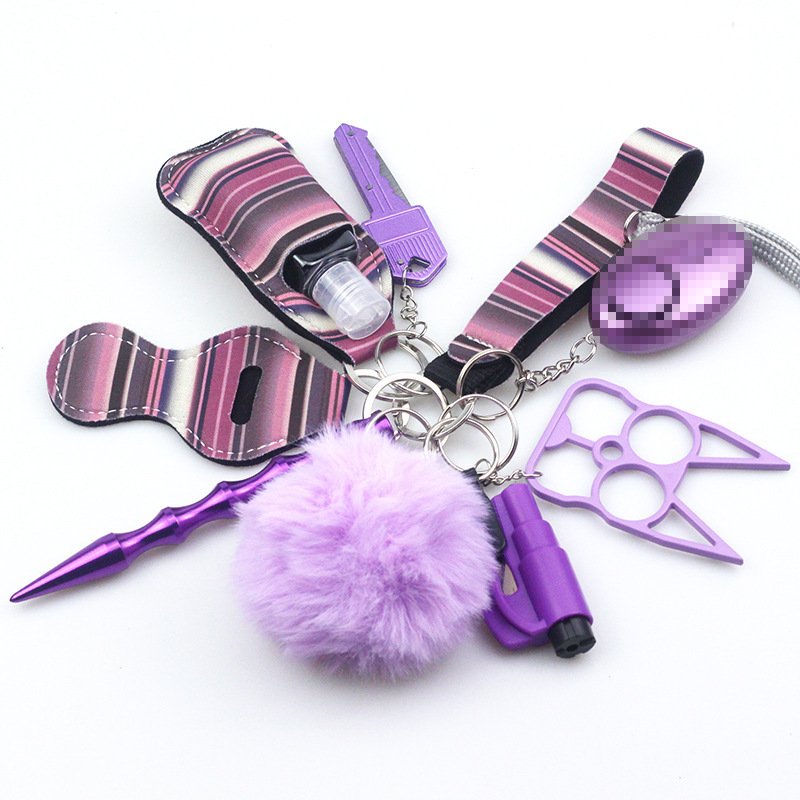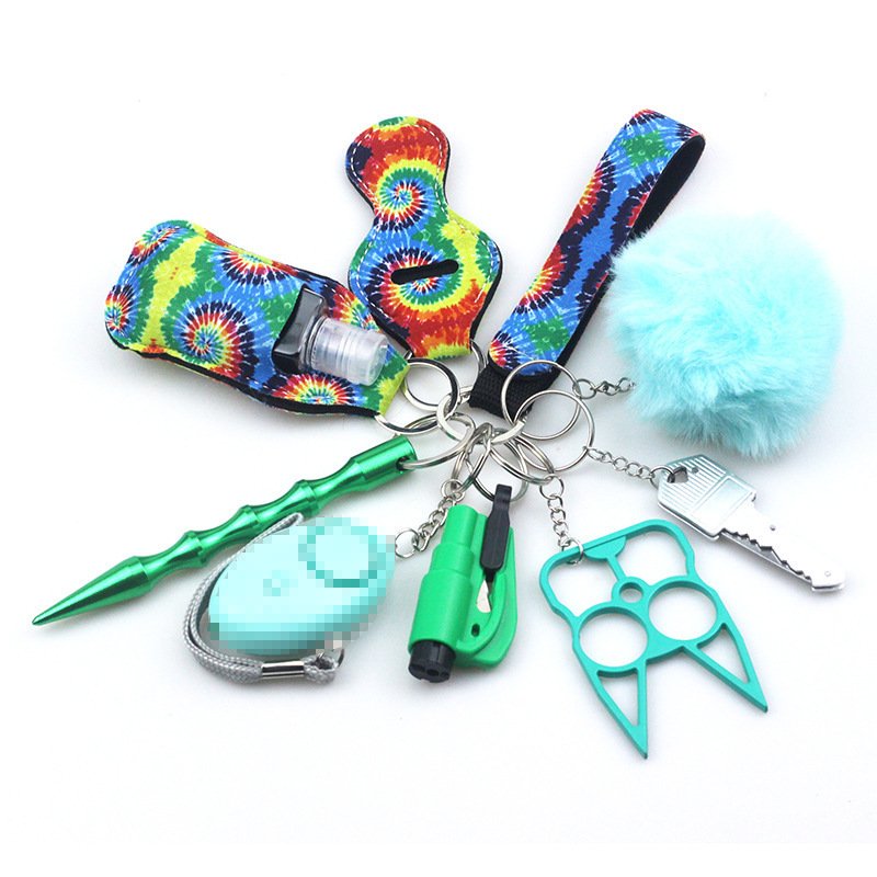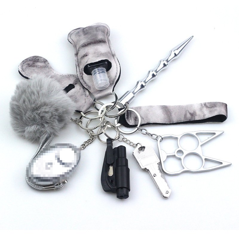 Cross-mirror wrist keychain 10-piece set women’s hand sanitizer bag zinc alloy anti-wolf alarm keychain