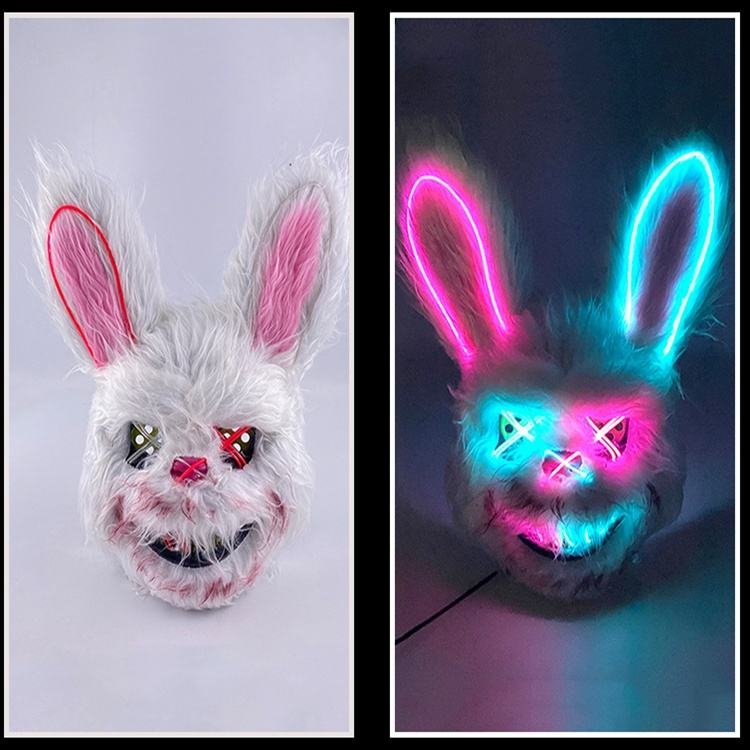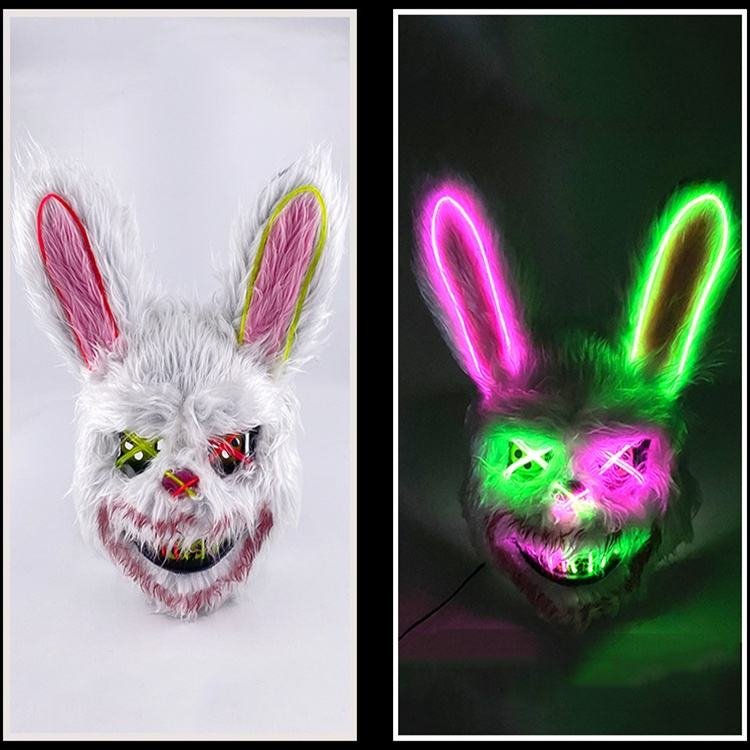 Hot Sale LED Rave Light-Up Rabbit Mask EL Wire for Halloween Masquerade Birthday and Easter Parties Made of PVC and Silk
