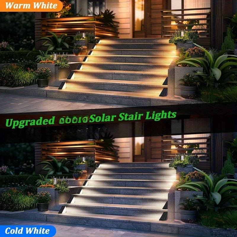 Solar Steps Stair Lights Outdoor Yard Decor Waterproof Deck Lighting for Outside Garden Fence Backyard Walkway Pathway